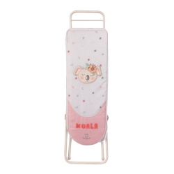 El pack incluye: Planchador de color blanco y rosa con diseño especial de la línea Koala, estructura plegable, bandeja de tela inferior, una plancha de juguete y tres perchas de plástico.