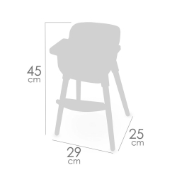 Medidas aproximadas de la trona: 45 cm de alto, 29 cm de ancho y 25 cm de fondo.
