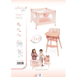 -Hazte con un dos en uno muy especial para el juego de imitación, este set que incluye una preciosa trona y un parque de juegos, con diseño especial de la nueva y colorida linea Tulipe. Ideal para disfrutar del juego de imitación, jugando y cuidando de los bebés de juguete más especiales del lugar.